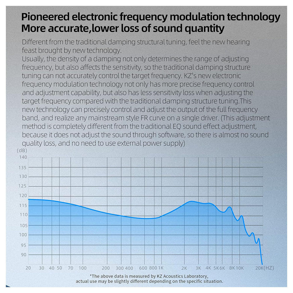 - KZ electronic crossover technology is more accurate, less bass loss - we can integrate and accurately control from ultra-bass - bass - mid - treble - ultra-treble by kz's new electronic crossover technology, and can achieve any curve style in a single dynamic driver headset. (this adjustment mode is completely different from the eq setting, because it does not belong to the software sound adjustment, so there is almost no sound loss.